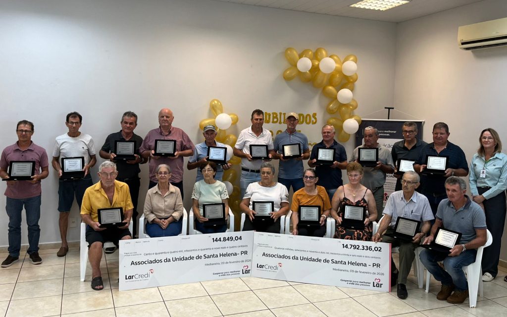 Dos 225 associados jubilados, 190 foram homenageados no Paraná e 35 em Mato Grosso do Sul. Mais do que estatísticas, esses números representam a solidez e a fidelidade da cooperativa e seus cooperados. Com o encerramento deste ciclo de distribuições de resultados de 2025, a Lar projeta o ano de 2026 com crescimento sustentável e investimentos estratégicos, focados na educação, inovação e na eficiência produtiva.