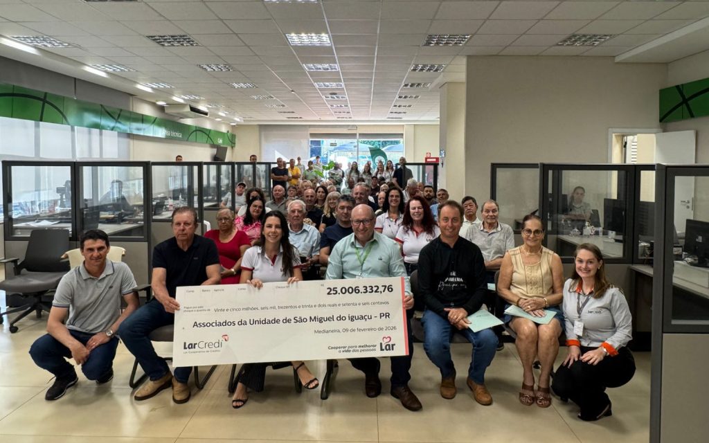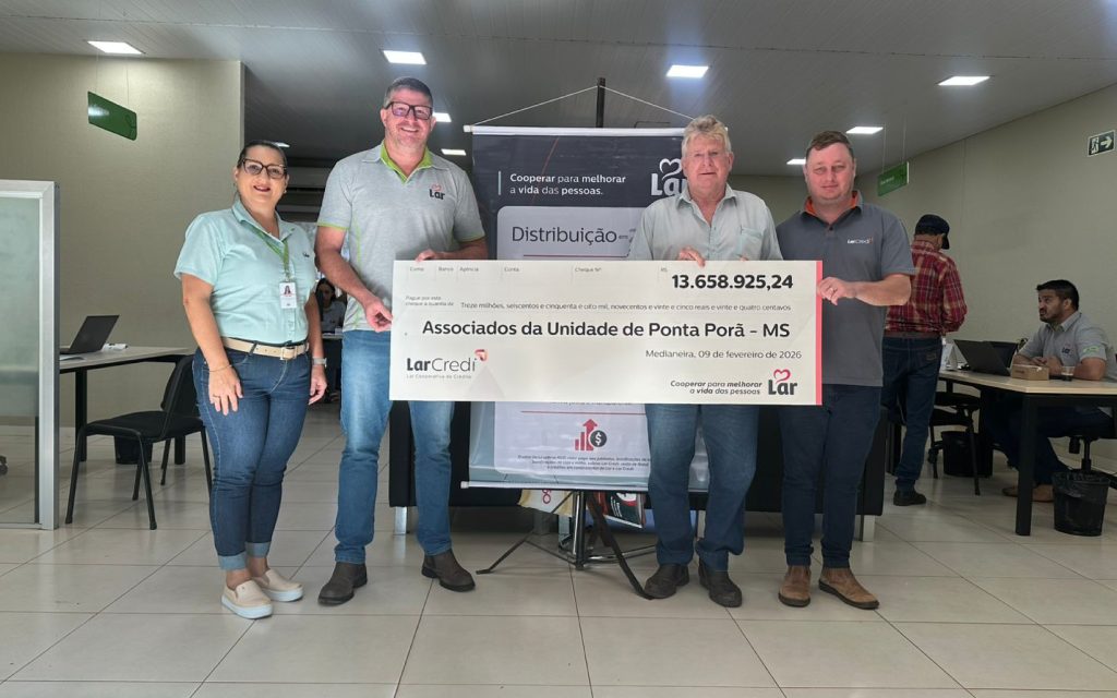 A Lar Cooperativa iniciou, nesta segunda-feira (09), a distribuição de sobras e devolução de capital aos associados do Paraná, Mato Grosso do Sul, Santa Catarina e Rio Grande do Sul. Os pagamentos, que totalizam R$ 160 milhões, referem-se ao exercício de 2025 e foram aprovados por unanimidade na última Assembleia Geral Ordinária (AGO).