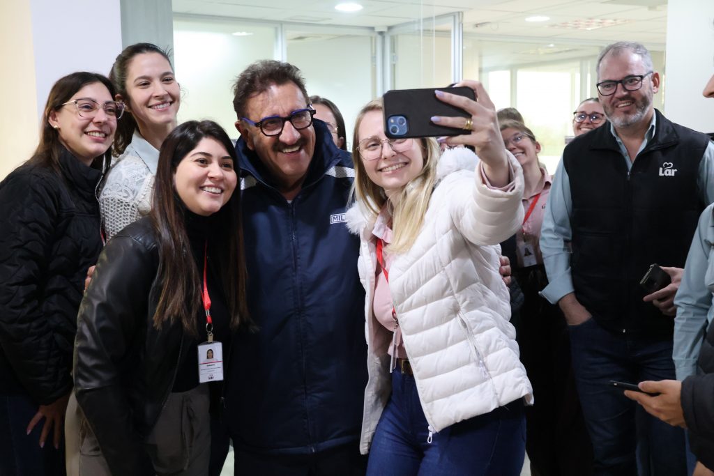 A visita de Ratinho movimentou o Centro Administrativo da Lar e ele fez questão de conhecer e interagir com as pessoas, cumprimentando, pousando para fotos e deixando uma mensagem de otimismo e reconhecimento pelo trabalho de todos.