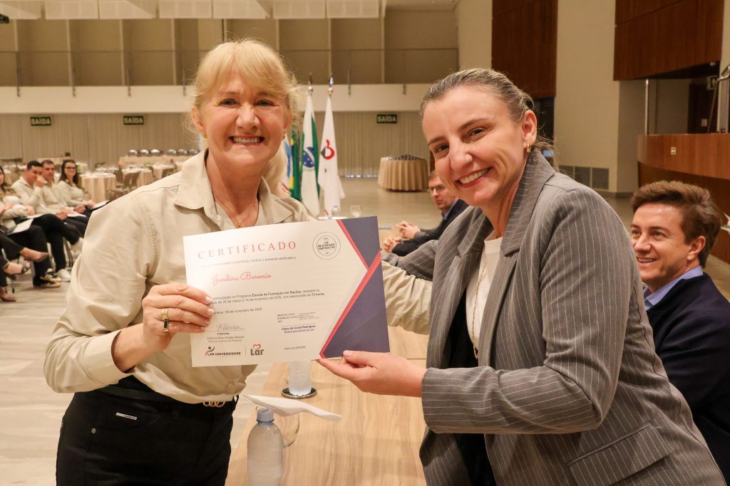 “A conclusão do curso representa dedicação, esforço e muita vontade de crescer. A capacitação fortalece nossas equipes, melhora resultados e demonstra o compromisso da cooperativa com as pessoas. Todo o conhecimento que conquistamos será aplicado no nosso dia a dia nas unidades onde atuamos e assim todos ganham”, destacou Michele Ribeiro Caldeira, da Unidade Industrial de Rações, de Rolândia (PR), após receber o diploma do curso.