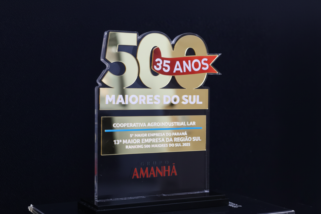 A Lar Cooperativa Agroindustrial foi reconhecida e agraciada no prestigiado prêmio “500 Maiores do Sul”, o mais importante ranking regional de empresas do Brasil, promovido pelo Grupo Amanhã, em parceria técnica com a PwC Brasil. O anuário, que celebra 35 anos de história, destaca a Lar como a 5ª maior empresa do Paraná e a 13ª maior empresa da região Sul do país.